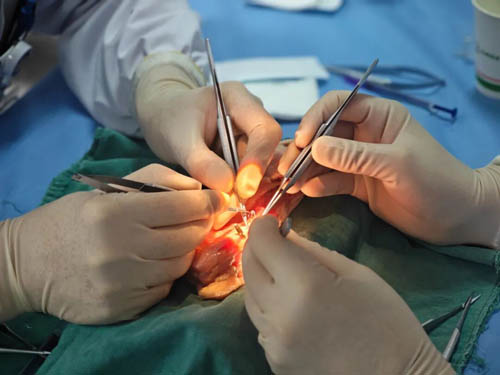 “显微镜下精准操作”:选手们在10倍放大的视野下,精准控制针距、缝合力度与打结角度,每一针、每一线都力求完美,全力保障血管吻合质量,杜绝渗漏隐患。